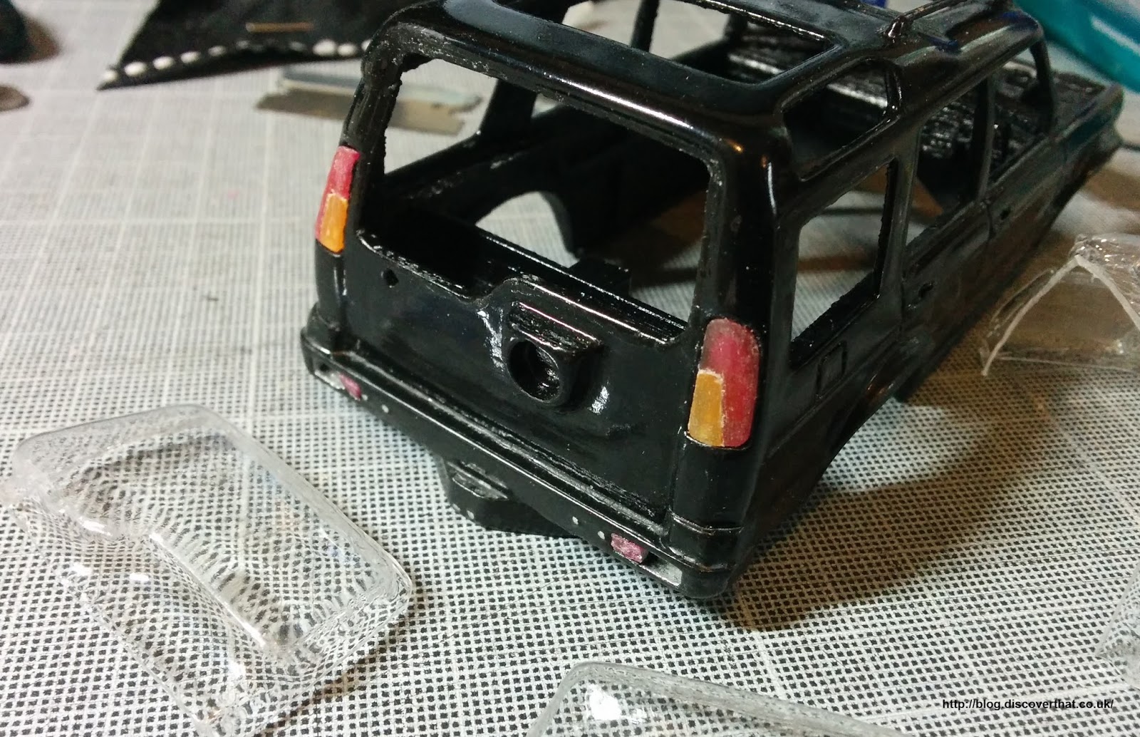 It's taken quite a bit of cutting and filing to get the rear lights of the model Discovery 2 to the shape needed.