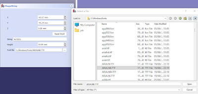 Type the text to display in the String field and choose a font file. In windows, this can be selected from the "C:\Windows\Fonts" folder. Alternatively, the font files can be copied and saved elsewhere for more convenient use.